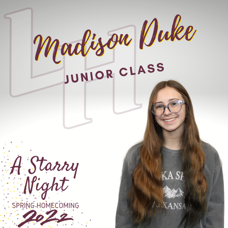 Lake Hamilton High School will hold spring homecoming on Friday, January 28, 2022. The afternoon ceremony will be held in Wolf Arena at 2:30 p.m. The evening ceremony will be held in Wolf Arena at 5:15 p.m.